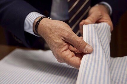 Для пошива рубашек мы используем только натуральные ткани ведущих мировых производителей: Loro Piana, Dormeuil, Holland & Sherry, Ermenegildo Zegna. Под этими брендами также выпускаются и нитки, которыми наши мастера вручную сшивают детали выкроек. Применение ручной работы позволяет поддерживать высокий уровень качества: мастер не сможет пропустить дефект, который при поточном производстве просто не заметят.